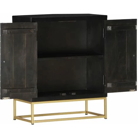 Ce buffet, avec une finition noire et dorée, apportera une touche intemporelle à votre décoration intérieure. Le buffet est fait en bois de manguier massif et est très stable et durable. Le dessus robuste est idéal pour placer des objets décoratifs tels que des vases ou des plantes en pot. Le meuble offre un grand espace de rangement pour garder vos objets divers bien organisés. Les motifs décoratifs contribuent au charme rustique du buffet. Remarque importante : les couleurs peuvent varier d’une pièce à l’autre, ce qui rend chaque pièce unique et légèrement différente l’une de l’autre ; la livraison est aléatoire.