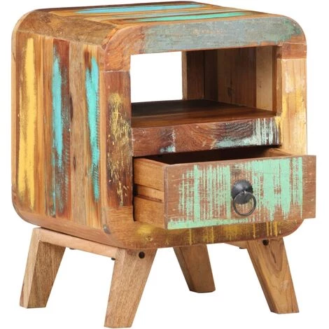 Cette table de chevet en bois sera un choix parfait pour ajouter une touche de charme industriel à la décoration de votre chambre à coucher. Elle peut également être utilisée comme support de téléphone, armoire de rangement, table de nuit, etc. La table de chevet est faite de bois massif de récupération, qui contient la caractéristique de différents bois comme le manguier, le teck, l’acacia, etc. Le dessus robuste est idéal pour placer une veilleuse, un téléphone, un réveil et d’autres petits objets, ou tout simplement afficher des cadres photo ou d’autres objets décoratifs. Le tiroir offre un espace suffisant pour garder les articles organisés et à portée de main. Remarque importante : la couleur et les grains de bois peuvent varier d’une pièce à l’autre, ce qui rend chaque pièce unique et légèrement différente l’une de l’autre ; la livraison est aléatoire.