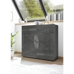 Buffet 2 portes en finition sérigraphiée grise .